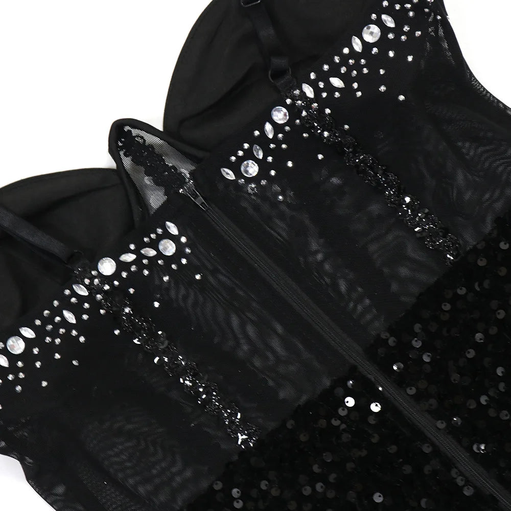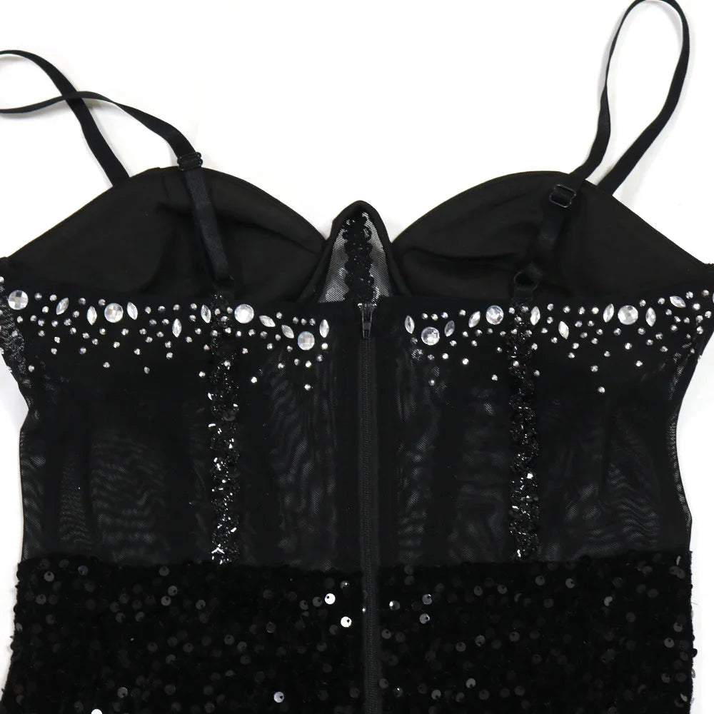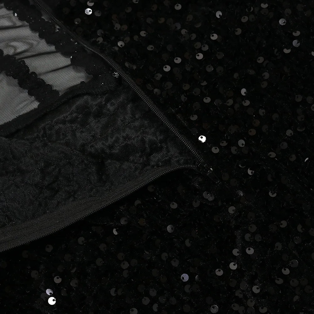 Slip into pure glamour with this floor-length velvet maxi dress designed to turn heads. Featuring a strapless, spaghetti-strap silhouette with a daring empire waistline, this piece hugs your curves in all the right places with its sleek mermaid cut. Adorned with shimmering sequins and crafted from a luxurious velvet blend of polyester and spandex, it offers the perfect balance of stretch and structure. Ideal for autumn and winter evenings, this sexy statement dress demands attention and confidence.