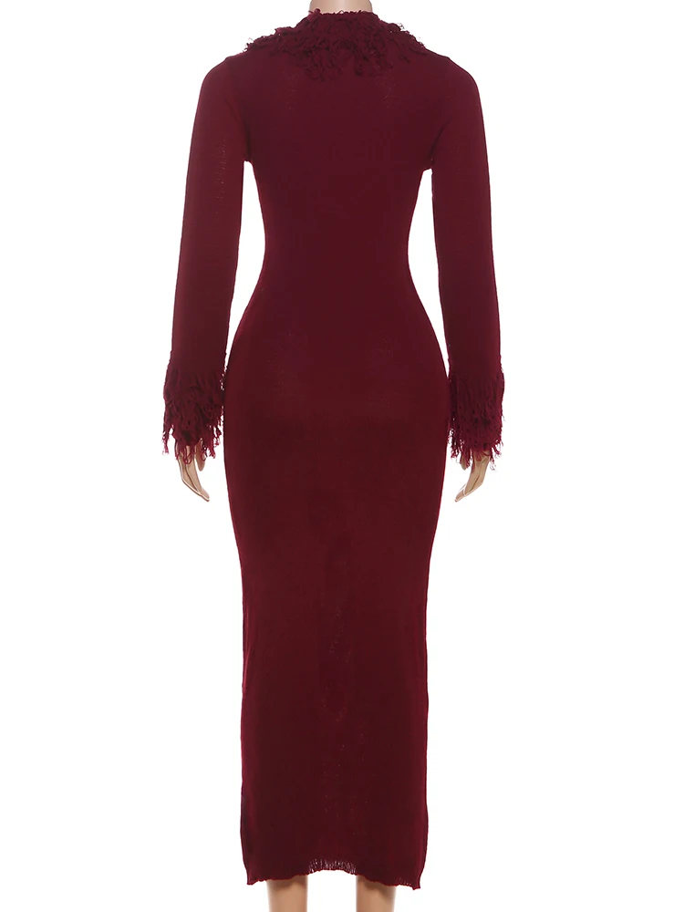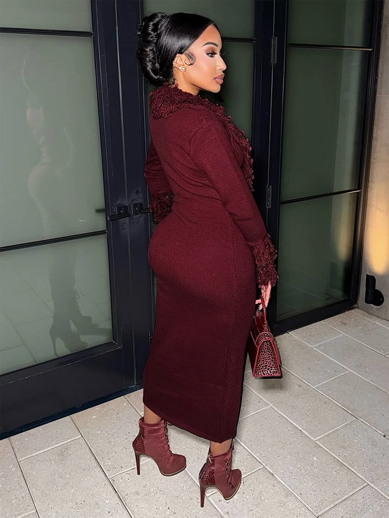 Elevate your wardrobe with the V Neck Alluring Lux Dress from Cutenew. This ankle-length sheath dress features a flattering V-neckline and elegant feather details, designed to hug your curves beautifully. Crafted from high-stretch, it provides exceptional comfort and style for any autumn occasion. Feel confident and captivating!