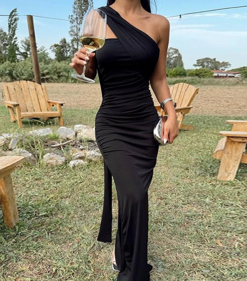 Luxurious Women's Evening Dresses Solid Color Halterneck Dress Backless Streamer Slit Temperament Long Dress for Women