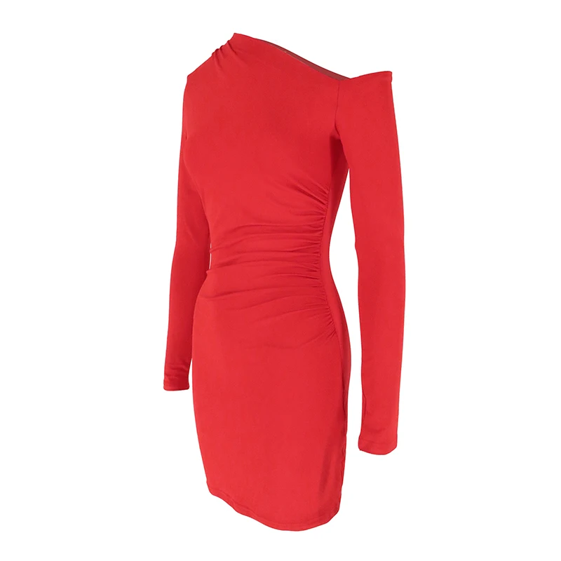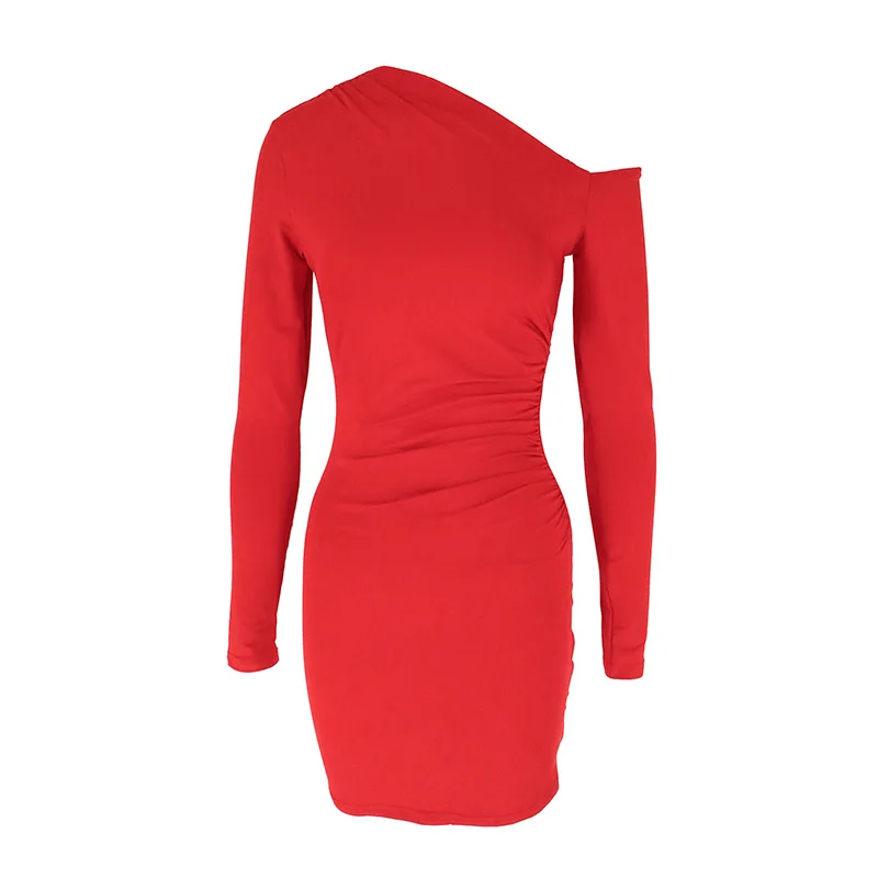 Be the epitome of confident style with our Miami mini shoulder dress. Made from a stretchy, soft fabrics, it features an alluring diagonal collar and an inclined one-shoulder design for a touch of sexy. This dress exudes elegance and charm.