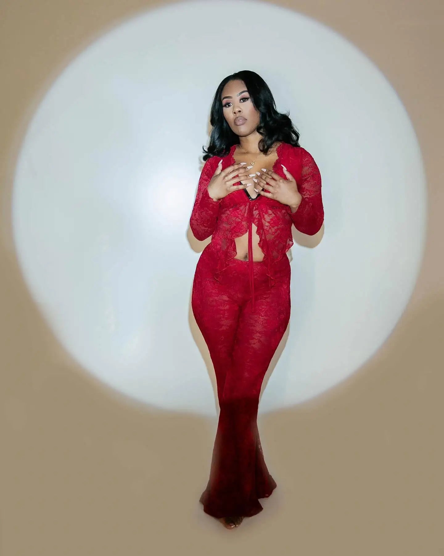 Step into bold elegance with the Flirty 2 PC Lace Pants Set, tailored for confident, middle-aged women. This daring ensemble features a loose V-neck pullover top with delicate tatting and practical pockets, combined with high-waisted, full-length pants boasting an elastic waist for effortless comfort. Crafted from breathable polyester broadcloth with a slight stretch, it ensures a flattering regular fit, perfect for office hours or casual occasions in summer. Embrace a look that’s both sensual and sophisticated, made to turn heads without compromising comfort.