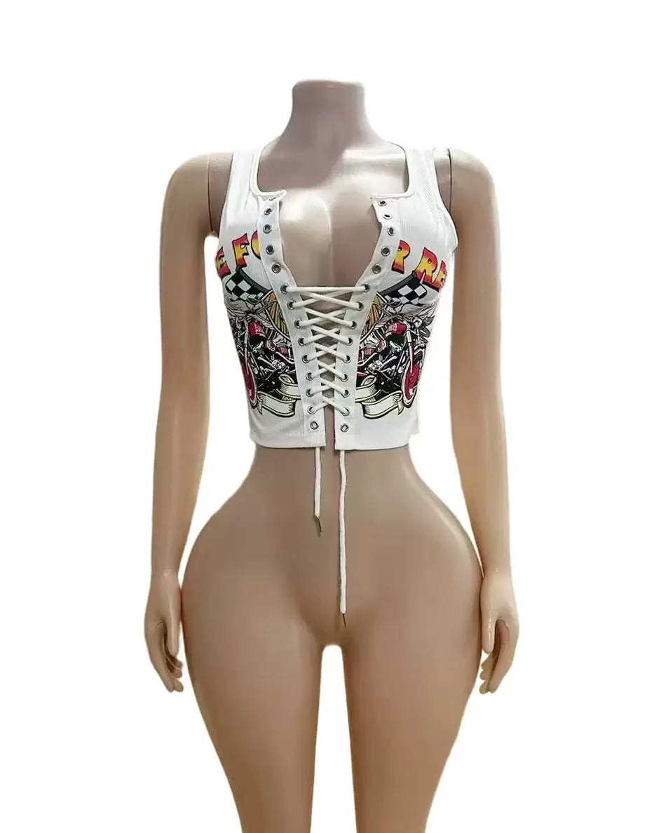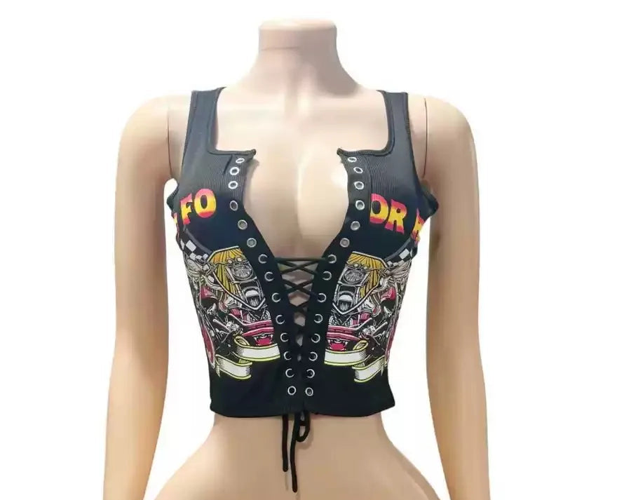 This RAZ Graphic Tee is designed for who want to stand out. Made from blended with medium stretch quality fabric, it features a regular length and bold geometric patterns. The tatting weave and stylish hole details create a provocative, sleeveless silhouette that’s perfect for any season. Embrace a sexy edge with this fearless top.