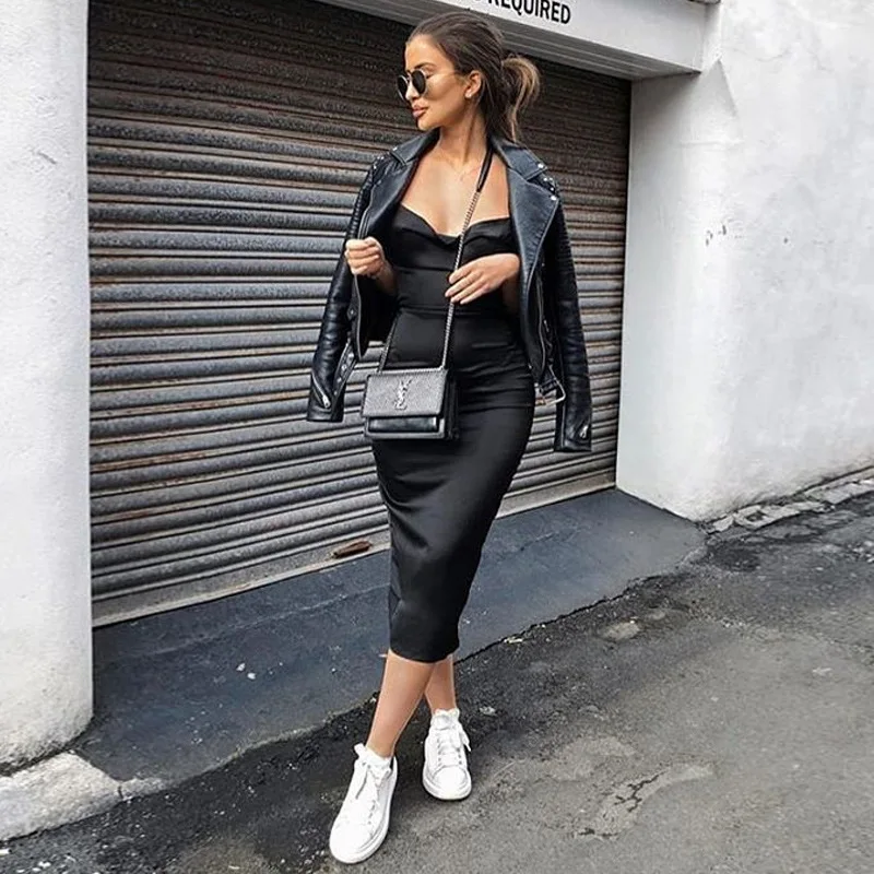 Indulge in confidence with the Sexy Satin Lace up Dress. Crafted from luxurious poplin fabric, this ankle-length dress features a backless design and slim fit for a sultry silhouette. With medium stretch and a v-neckline, a decent glam occasions. A must-have for any fashion-forward woman.